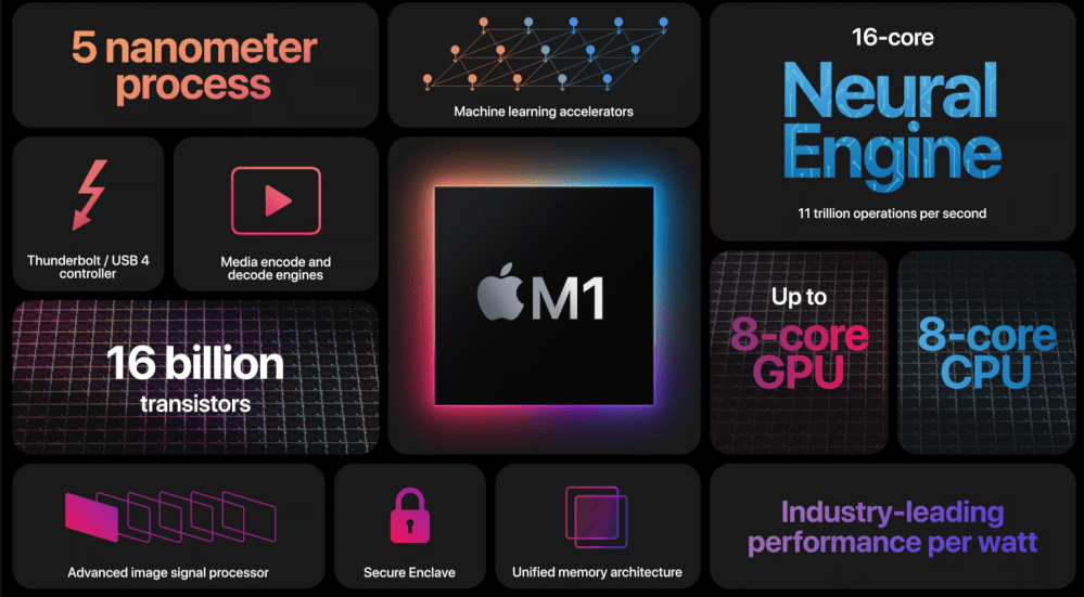 Il nuovo chip M1, basato su architettura Arms, permette ai nuovi pc della casa della mela morsicata di compiere un enorme balzo in avanti, per potenza e velocità, e marca l’abbandono dei chip Intel che fino ad ora avevano equipaggiato le sue macchine.