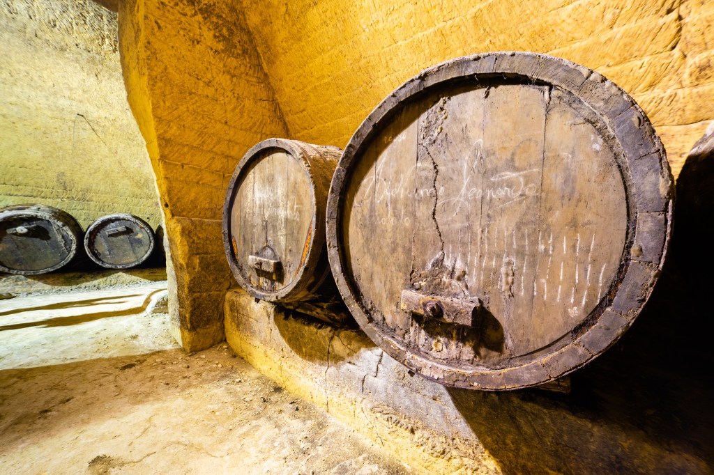 La temperatura costante assicurata dal tufo e dalla profondità permise lo sfruttamento delle grotte per lo stoccaggio di vino, in botti di legno di diversa capienza, olio, dapprima negli orci di terracotta e poi nei fusti in ferro, e derrate alimentari.