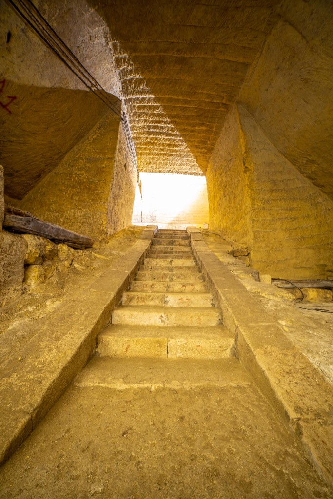 Oggi però non voglio parlare della storia archeologica di Canosa, ma di una storia più recente: l’affermarsi, nell’ottocento, di una nuova borghesia che traeva le sue ricchezze dall’agricoltura e dal commercio di prodotti agricoli e dei suoi derivati, principalmente olio e vino, e dal taglio e commercializzazione del tufo. Eredità di questa borghesia fu la costruzione di numerosi palazzi patrizi che, nelle loro fondamenta, nascondevano delle grotte. Queste grotte erano, in realtà, le cave di tufo destinato alla costruzione dell’abitazione sovrastante e restavano nella proprietà della famiglia proprietaria dell’immobile. Al contrario delle gallerie poste a 15-20 m di profondità riservate ad attività estrattive più intense e ad uso edilizio e commerciale ubicate al di fuori del perimetro urbano, queste erano più superficiali raggiungendo originariamente i 5-6 metri di profondità ed erano presenti nel centro cittadino. (cfr. Canosa di Puglia sotterranea: uso delle calcareniti dalle cave al manufatto).