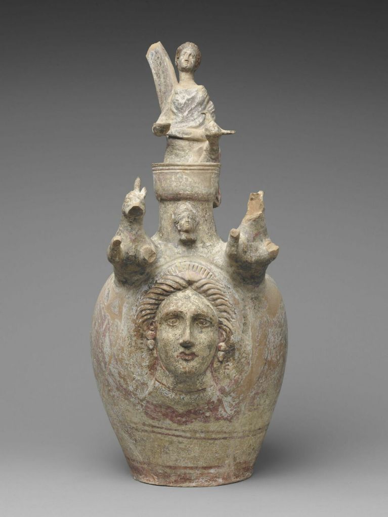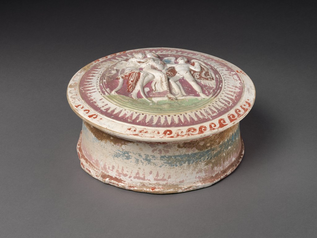 Risultato di questi traffici è che al Metropolitan è esposta una Pyxis (scatola in terracotta) raffigurante una coppia seduta ed Eros straordinariamente somigliante alla scatola raffigurata in un acquarello di Biardot. Nella descrizione del reperto è indicata solo la provenienza da Canosa ma alcuna indicazione è data sullo scavo in cui è stata ritrovata.