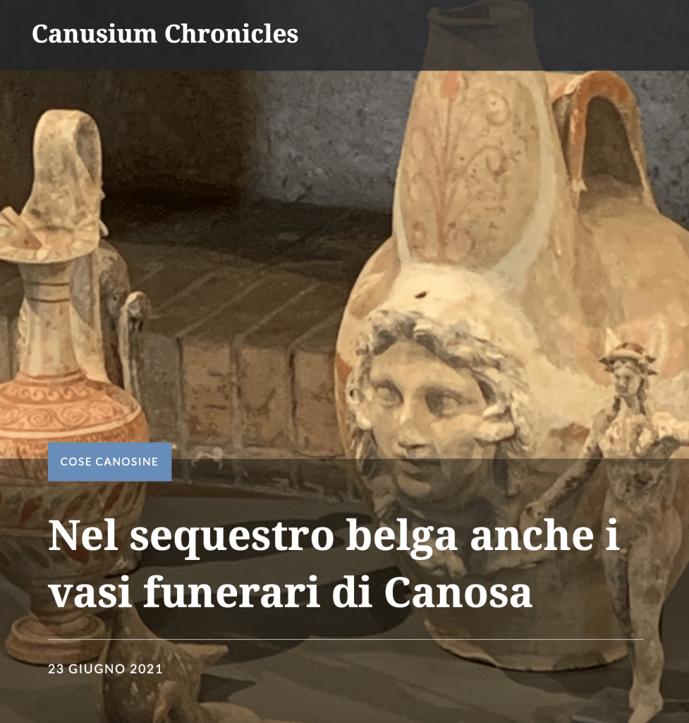 3# NEL SEQUESTRO BELGA ANCHE I VASI FUNERARI DI CANOSA