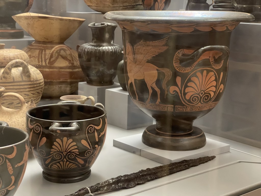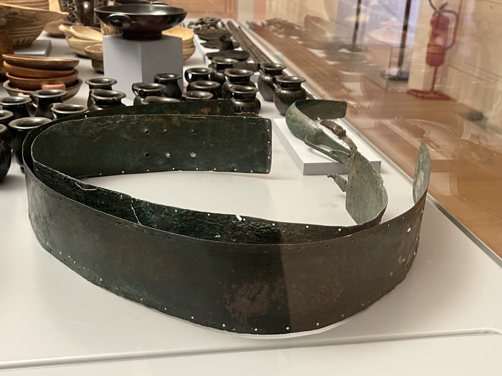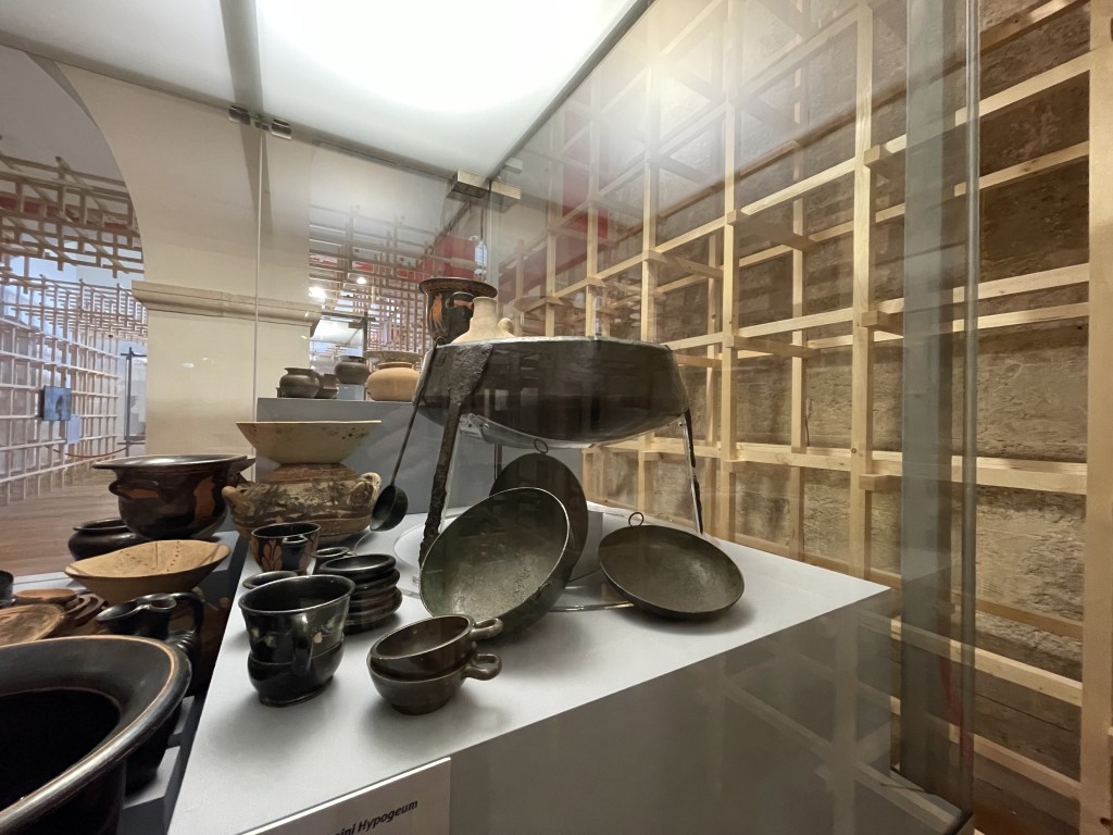 L’imponente corredo funerario fu studiato, analizzato e restaurato, e successivamente esposto al Museo Archeologico Nazionale di Taranto. Sino al 23 luglio 2023 è stato esposto in “Antichi Popoli di Puglia. L’archeologia racconta” la mostra allestita nelle sale del Castello Svevo di Bari. Di questa mostra ne avevo parlato con l’arch. Roberto Cremascoli, curatore dell’allestimento, in Follow me! il più iconico progetto di rigenerazione urbana di Canosa diventa realtà: al via il cantiere del C.Ur.A.. Nel viaggio attraverso le più importanti scoperte archeologiche della Puglia, sono esposti due corredi funerari provenienti da Canosa: l’Ipogeo del Vimini e la tomba a fossa 1/89 di Contrada Toppicelli.