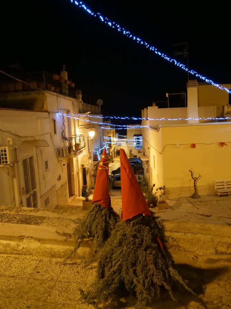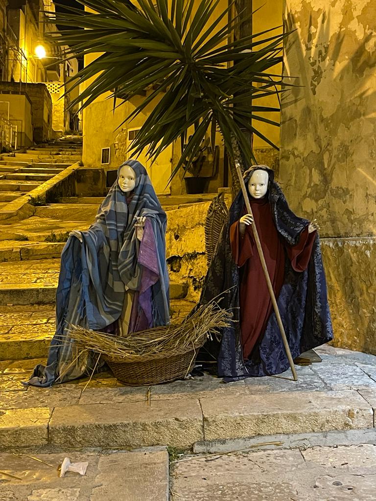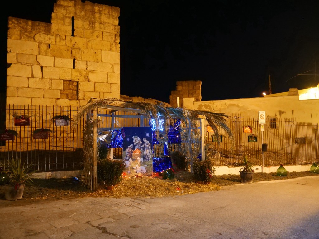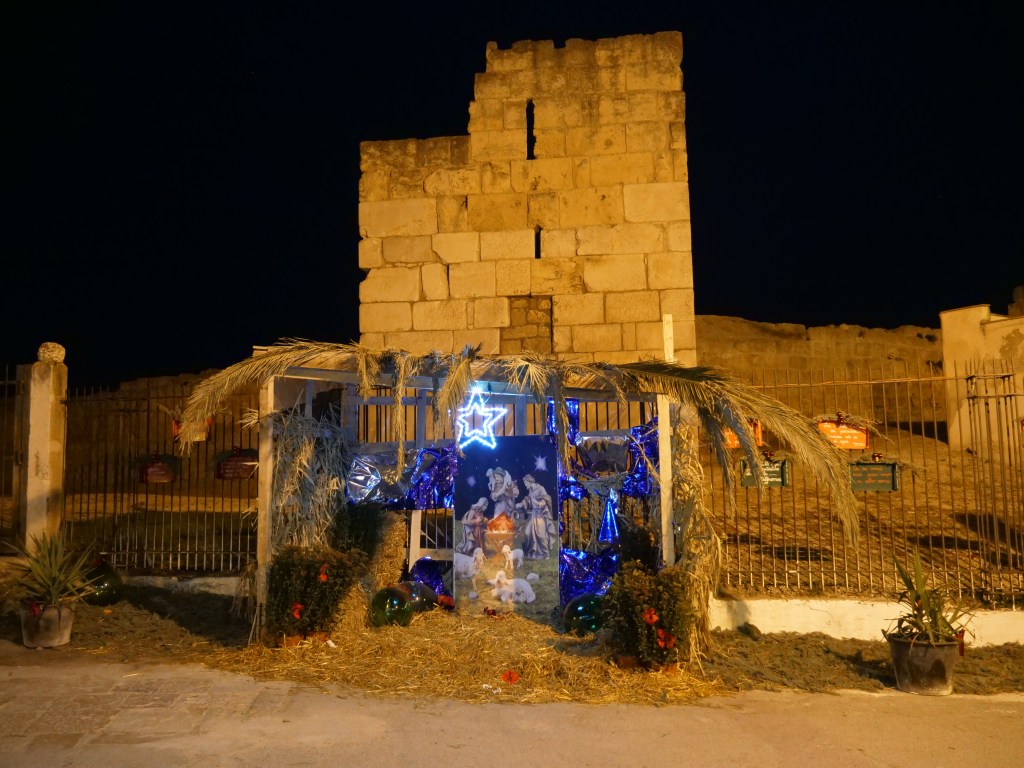 Si respira un’aria tipicamente natalizia: luminarie, festoni, rami che richiamano gnomi e tanto altro. Perdersi tra quei vicoli, alla ricerca di oggetti, curiosità o anche solo passeggiare in un luogo che per tanti canosini è sconosciuto restituisce un’immagine nuova del Borgo. In uno dei luoghi più degradati, lungo la recinzione dei ruderi del Castello diventata negli anni luogo di abbandono di rifiuti, dopo un’imponente opera di bonifica è stato allestito il presepe.