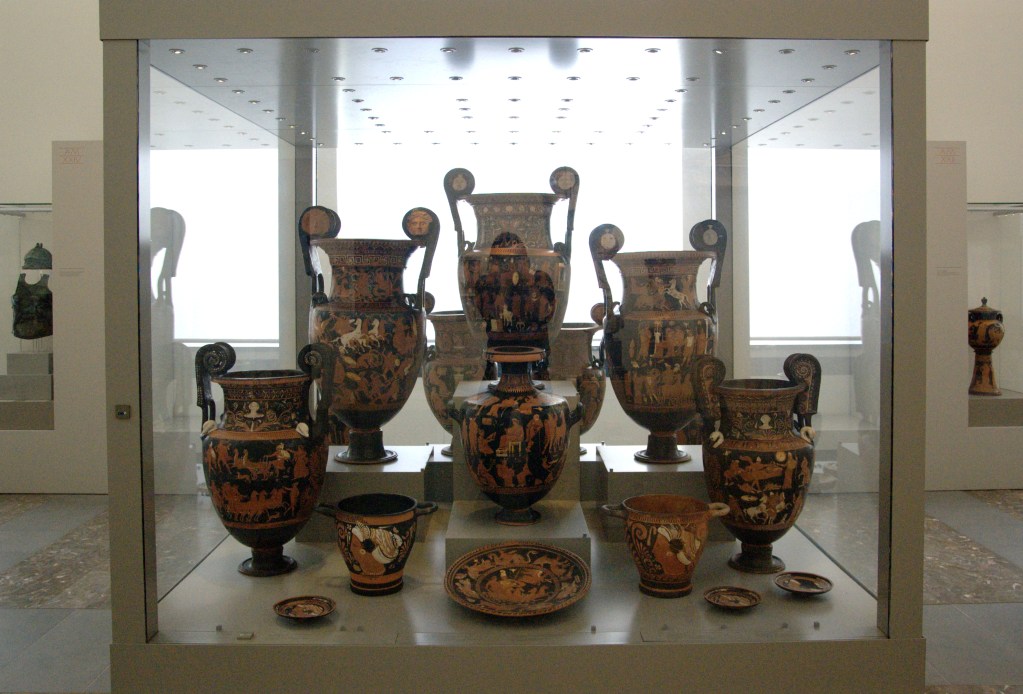 Premessa: questo post ha un lungo prologo prima di arrivare al punto cruciale e nasce dalla vastissima eco mediatica che ha avuto la notizia del ritorno in Italia di 21 vasi Apuli risalenti al IV sec. a.C., trafugati in Puglia e infine approdati in Germania all’Altes Museum di Berlino che li acquistò nel 1984 per tre milioni marchi tedeschi: circa due miliardi di lire al cambio dell’epoca.